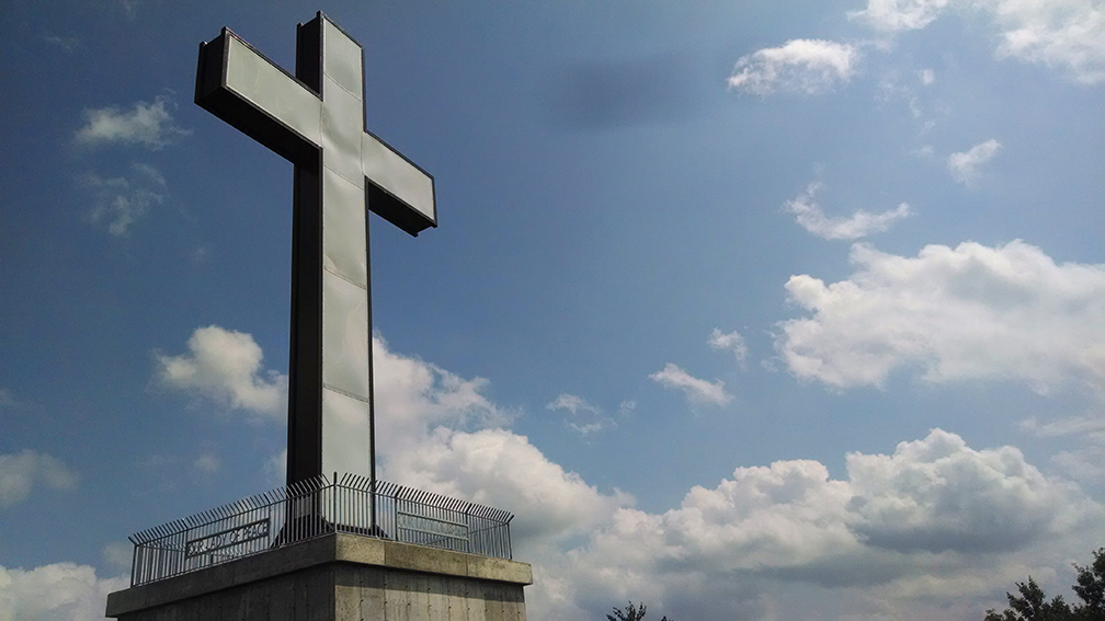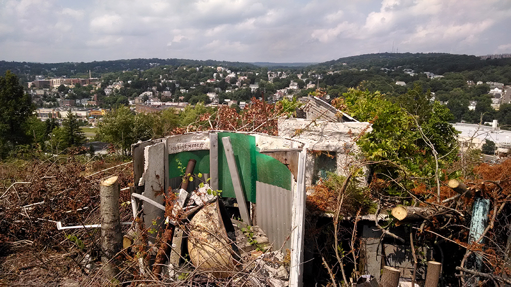 There had been several attempts made to restore the park, however they all have failed. We did see small bits of upkeep, like trimmed grass and weeds, and dead trees that were cut down into small pieces. In 1997 a group of Boy Scouts repaired the infamous illuminated “Holy Land USA” sign as part of a community service project. Even more recently, in 2013, Waterbury mayor Neil O’Leary purchased the property and began raising money for Holy Land’s restoration. A part of this restoration was a brand new internally-lit 57 foot cross, which can be seen looming over the town from miles away. This replaced the older 56 foot neon cross (1 foot larger!), which provided fodder for the town joke that citizens grew up thinking Jesus was electrocuted on the cross.