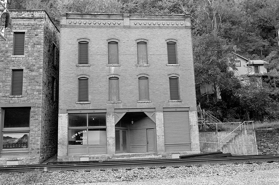 Like the rest of the New River Gorge ghost towns, the town is property of National Park Service. The train station was turned into an information center, but was closed at the time of our visit, and some of the commercial buildings housed a display in their windows of some old photos of the town. The tracks, however, are still active, with a few trains passing through daily. Thurmond is also still trafficked by Amtrak. While it is not a regular stop (it was discontinued as a stop in 2006), trains will stop there if someone is on the platform or if a passenger on the train requests the stop. To date, Thurmond is the 2nd least used station, just after Sanderson, Texas.