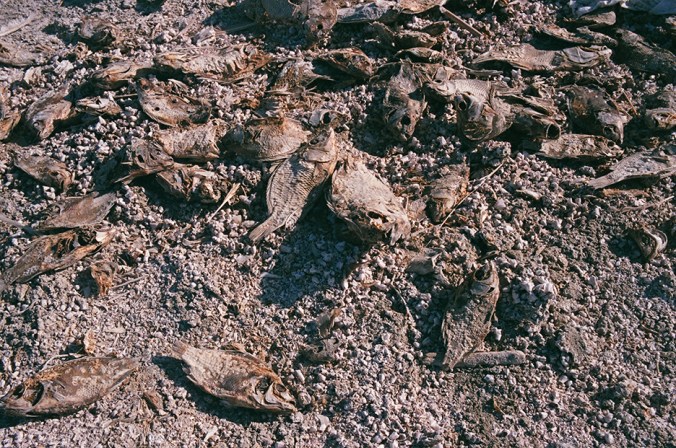 Oh just a small collection of dead fish…that lined the entire length of the beach. And that gravel they’re sitting on? Granulated bones.