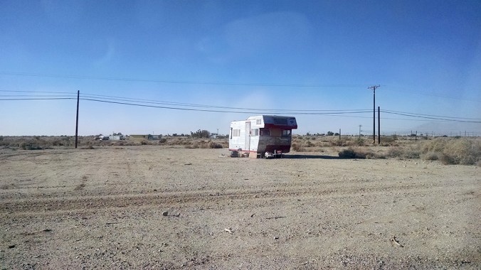 Each town (Are they even considered towns? Neighborhoods?) is surprisingly far away from one another. The size of the sea is deceiving! It takes about 2 hours to drive the entire perimeter. But contrary to how the area looks, each “town” was not completely abandoned. I discovered this when we were first walking around Salton Sea Beach and I saw a decrepit looking trailer in the middle of a barren piece of land. “Look at that abandoned trailer in the middle of nowhere,” I pointed. And right as my hand went up, two little dogs popped their heads up in the window on cue. That was when we realized that most of these “abandoned” trailers were not so vacant.